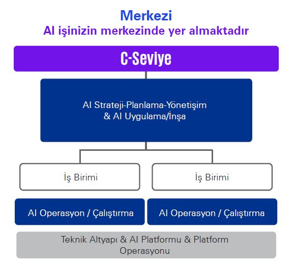 - Orta ve büyük ölçekli şirketlerle olan deneyimlerimize dayanarak, en önemli faydaların Merkezi modelden elde edildiğine inanıyoruz. Sınırlı yapay zeka beceri seti ve yapay zeka platformu seçeneklerini değerlendirme ihtiyacı göz önüne alındığında, Merkezi bir model şirket genelinde iş vizyonunuzu desteklemek için sağlam bir temel sağlamaktadır.