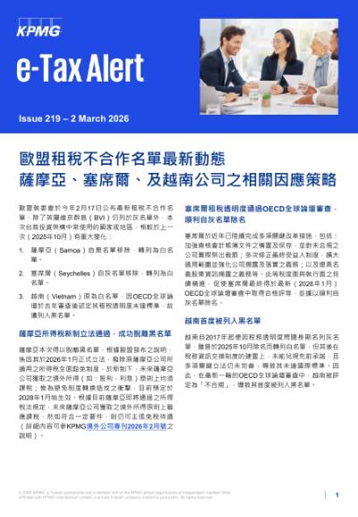 3.越南於今年2月被列入黑名單,顯示歐盟對其在稅務法令遵循合規性持否定態度,認為其未能履行除名時之改革承諾。針對有投資越南之台商,若涉及與歐盟國家的跨境交易往來,恐面臨額外的資金證明要求、更高的扣繳稅負與資訊揭露義務,甚至影響移轉訂價的查核,建議台商應尋求專家協助並儘早因應。