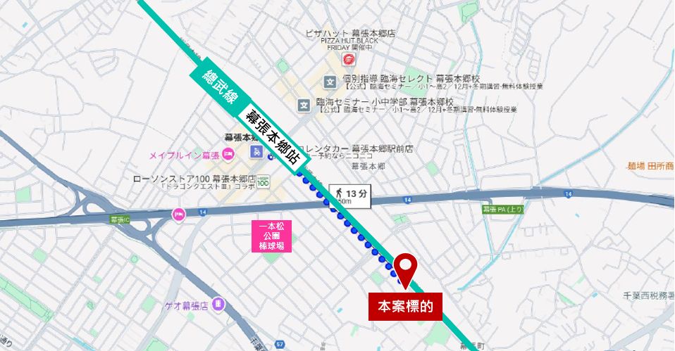- JR總武線「幕張本鄉站」走路約12分鐘