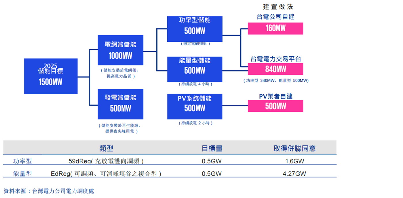 儲能市場於今年度投資熱絡,市場快速發展,惟今年度 5 月份台電公司由於收到的申請量已超過需求量 8 倍以上,為避免市場失衡,已暫停併網申請,讓原本還有多家尚在規劃中之儲能案場皆暫緩投資。此外,電力市場也有聚合商透過售電平台的運作,並搭配台電輔助服務市場之交易,協助購電企業進行能源管理與調控。