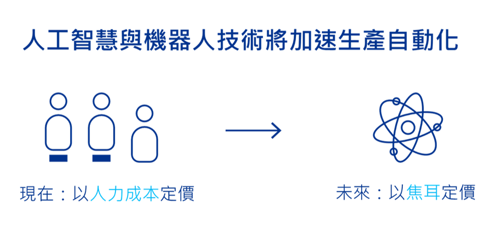 多數人認為,能源在全球經濟和商業競爭力中變得越來越重要。假設在不久的將來,發展中國家大部分生產和商品分配由機器人和人工智慧自動化,過去,生產通常是基於人力成本定價的,而未來,定價產品的最基本方式可能是能源,以焦耳為單位。因此,在電力成本、安全性和可靠性方面相對成熟的國家將取得競爭優勢。
