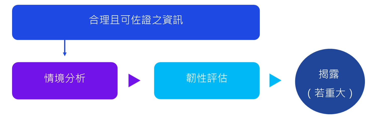 - 評估現有系統、流程及控制是否足以提供描述公司韌性評估之揭露。
