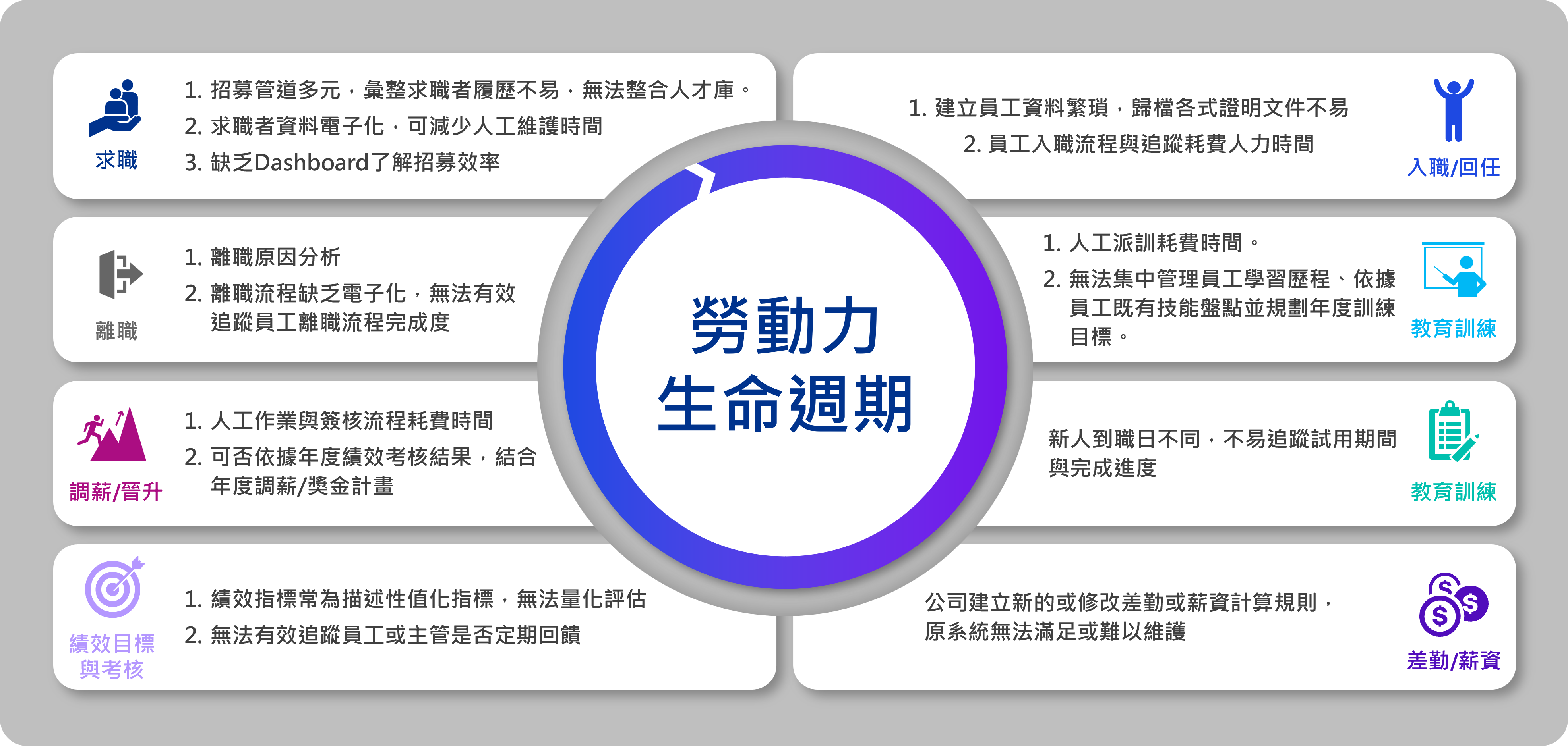 - 需求整合:整合排班、差勤和薪資功能,簡化資料轉換過程。