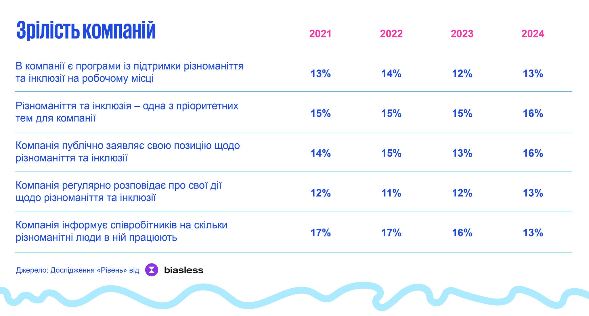 На превеликий жаль, в Україні все ще жінки та й чоловіки дуже часто взагалі не можуть ідентифікувати гендерну нерівність та дискриманцію через брак знань в сфери GESI та відсутність досвіду життя в контексті, де гендерна рівність відчувається на всіх етапах життєвого циклу (Скандинавські країни, Ісландія). Немає системи знань щодо гендерної рівності, яка була би вбудована в дошкільну, шкільну та вищу освіти. Запалу ліквідувати цей розрив в освіті майже немає і у корпоративному вимірі. Тільки 16% українських компаній інвестують у просвіту з інклюзії (яка включає і гендерні питання), за даними дослідження «Рівень» від Biasless.