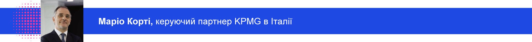 Маріо Корті: — Ви маєте рацію — Ukraine Recovery Conference у Римі є ключовою подією липня. Це, на мою думку, важлива можливість для KPMG зробити реальний внесок у відбудову країни, яка, як ми всі знаємо, зіштовхнулася з надзвичайними викликами. Як лідер у сфері професійних послуг, KPMG прагне сприяти відновленню, яке буде стійким, інклюзивним та ефективним.