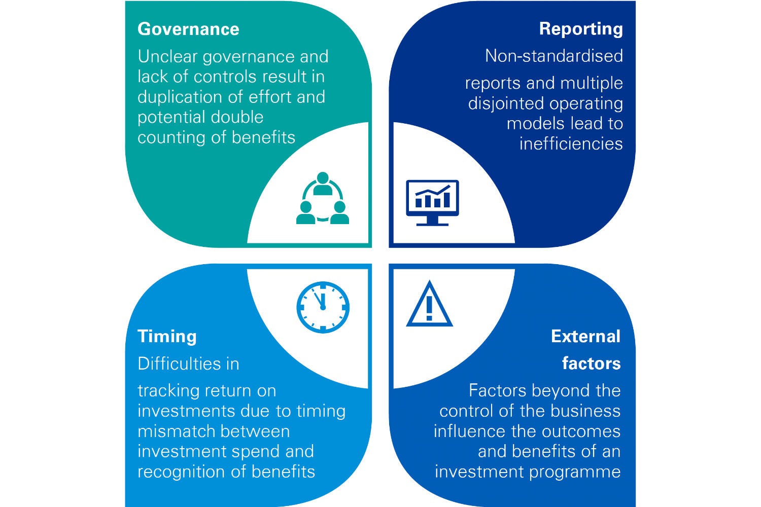 This calls for an alignment of strategic initiatives such as a benefits tracking framework and effective operating model to demonstrate realised benefits to key internal and external stakeholders.