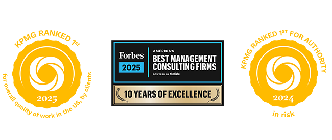 In a recent survey of clients by Source, KPMG was ranked the #1 firm for quality of work and recognized as the leading authority in risk consulting in the US. The firm was also named one of America’s best management consulting firms by Forbes.