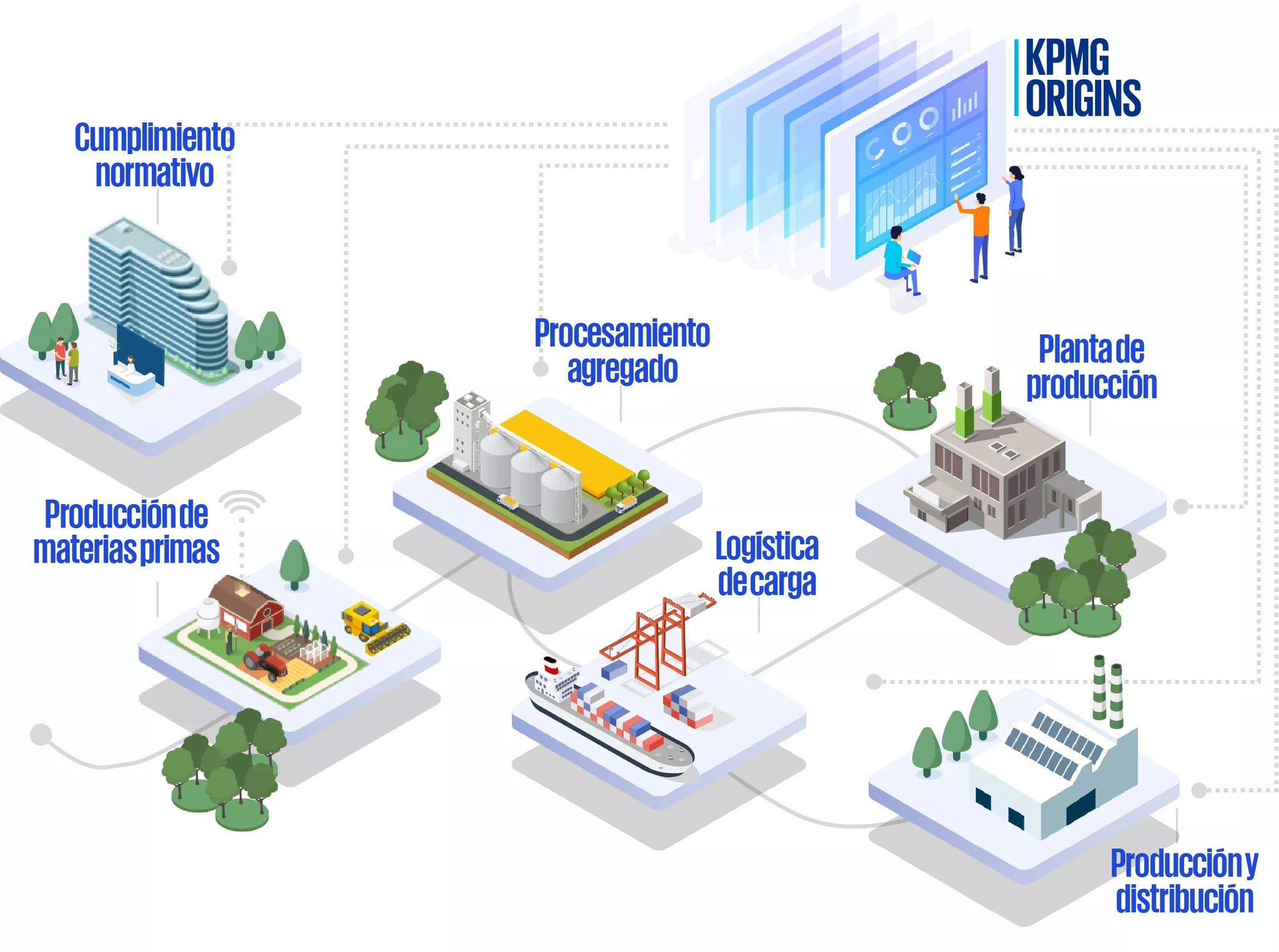 KPMG Origins cubre toda la cadena de suministro, reuniendo los puntos de datos clave para la debida diligencia sobre ubicaciones, organizaciones y productos, conectando datos de un envío específico a lo largo de la cadena de valor.KPMG Origins cubre toda la cadena de suministro, reuniendo los puntos de datos clave para la debida diligencia sobre ubicaciones, organizaciones y productos, conectando datos de un envío específico a lo largo de la cadena de valor.