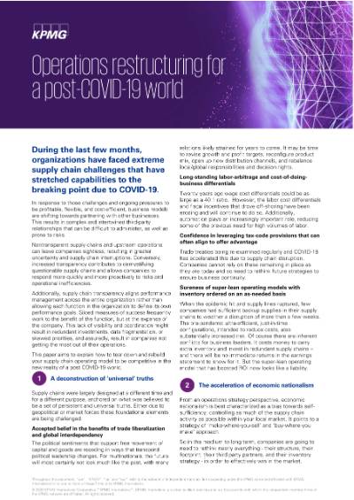 This paper aims to explain how to tear down and rebuild your supply chain operating model to be competitive in the new reality of a post COVID-19 world.