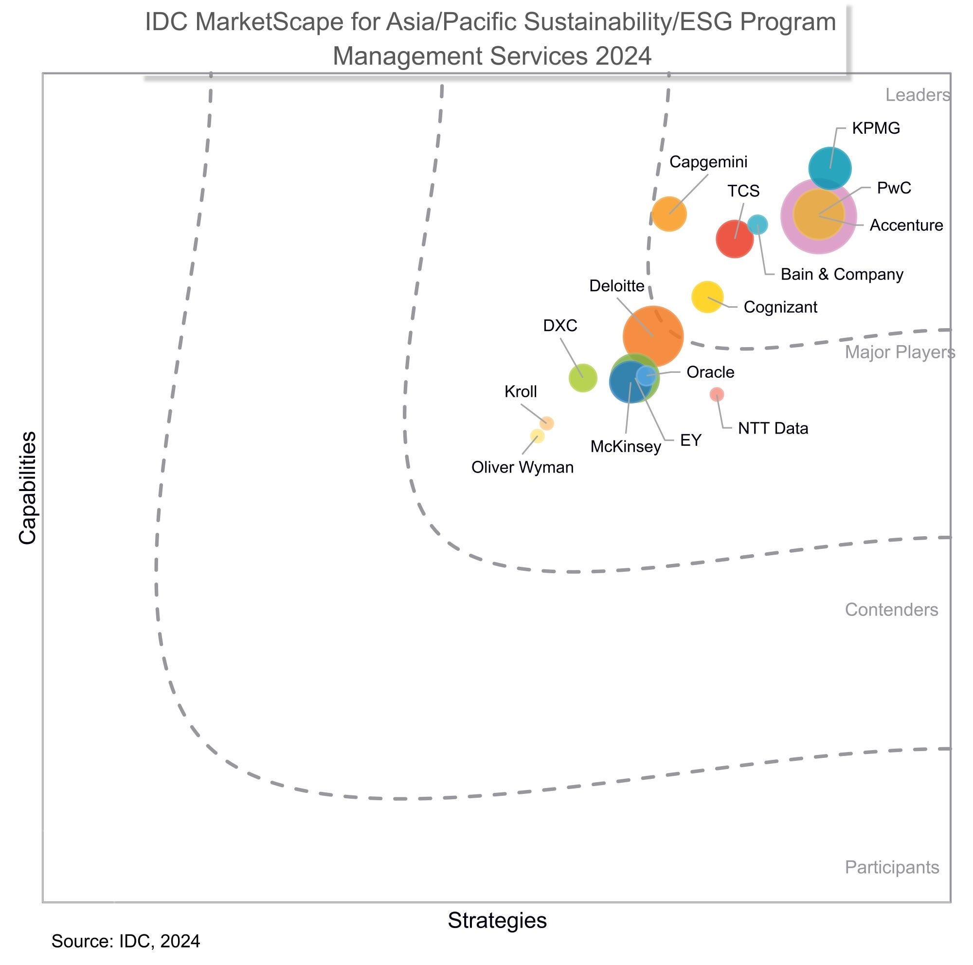 KPMG has been recognized as a leader, in the IDC MarketScape: Asia/Pacific Sustainability/ESG Program Management Services 2024 Vendor Assessment.