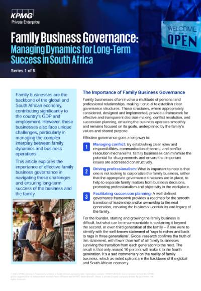 This publication explores the importance of effective family business governance in navigating these challenges and ensuring the long-term success of the business and the family.